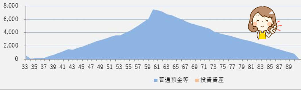 妻60歳までの約20数年×200万円=4000万円強の改善効果になりますので、この場合、90歳時点でも資産が残りそうだということが分かります。
