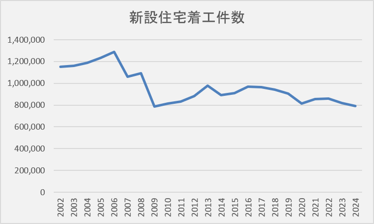 日本の新設住宅着工件数は長期的に減少傾向にあります。